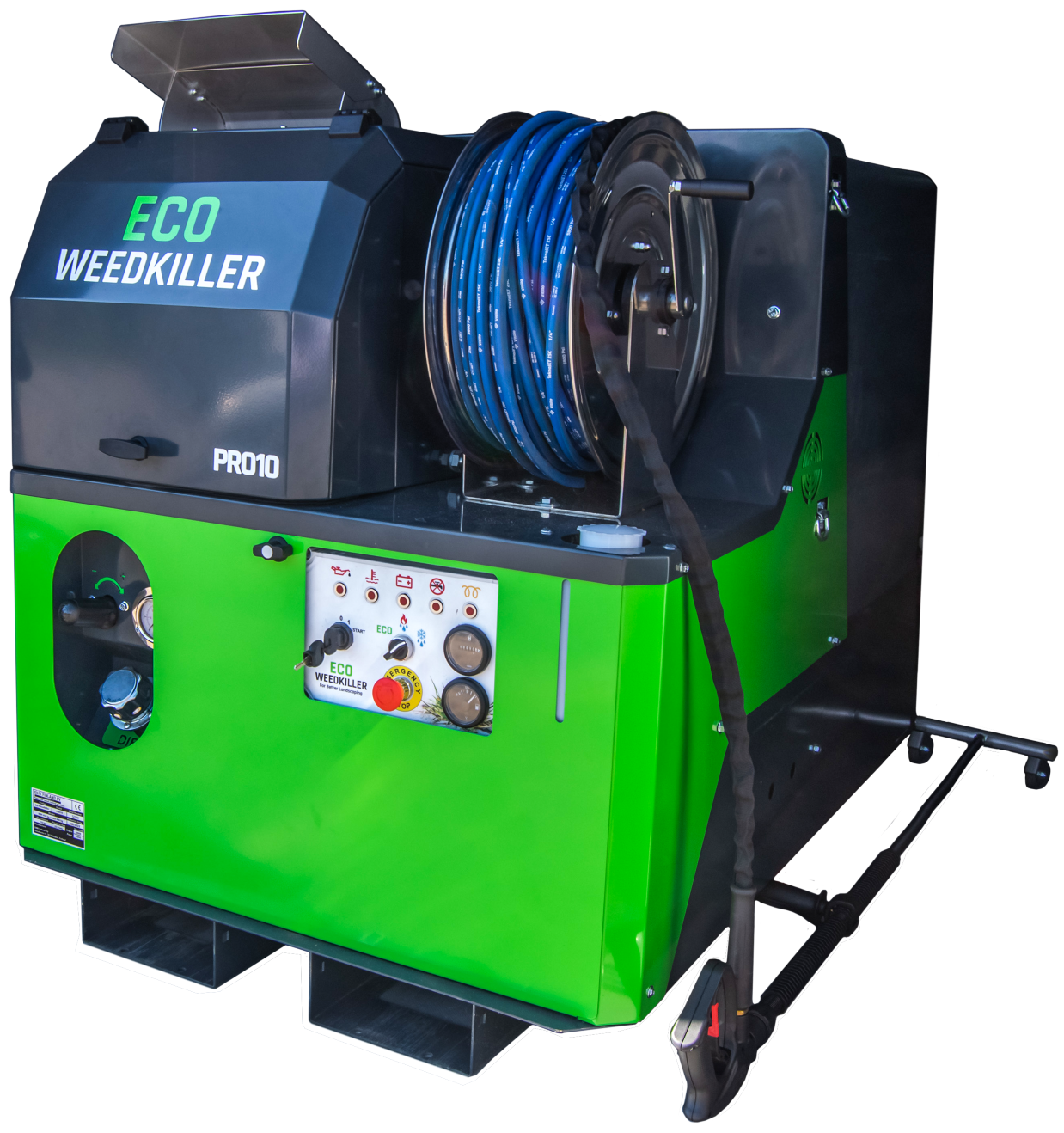 Eco WeedKilleri standardrõhu vee voolikurullil on 80 meetrit voolikut, mis võimaldab korraga töödelda rohkem kui pool hektarit. See paneb meid meie konkurentide ees.